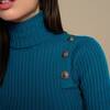 Jersey de punto con cuello alto y manga larga. Cuello, cintura y mangas en rib. Detalle de botones en sisa.