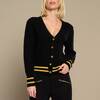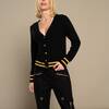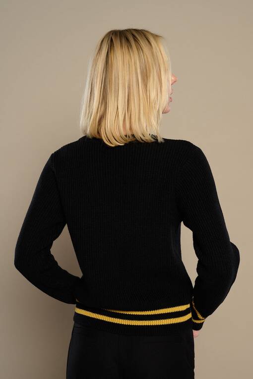 Chaqueta de punto con escote en pico. Puños y mangas en rib. Cierre con botones.