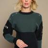 Jersey de punto elástico. Cuello redondo y manga larga. Cuello, puños y cintura en rib. Detalle de tachuelas de estrellas en hombro. Guepardo bordado en manga.